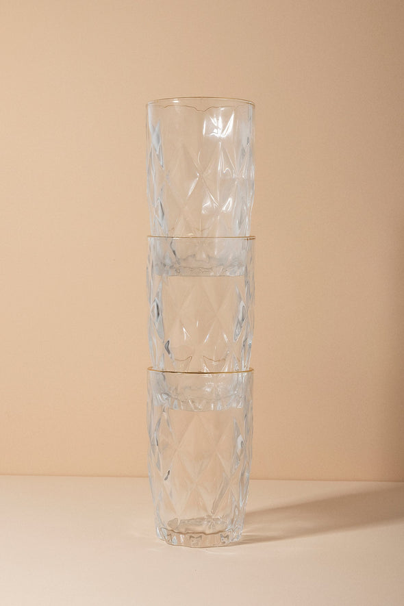 Gold Rim Karina Textured Tall Glass - Set of 6